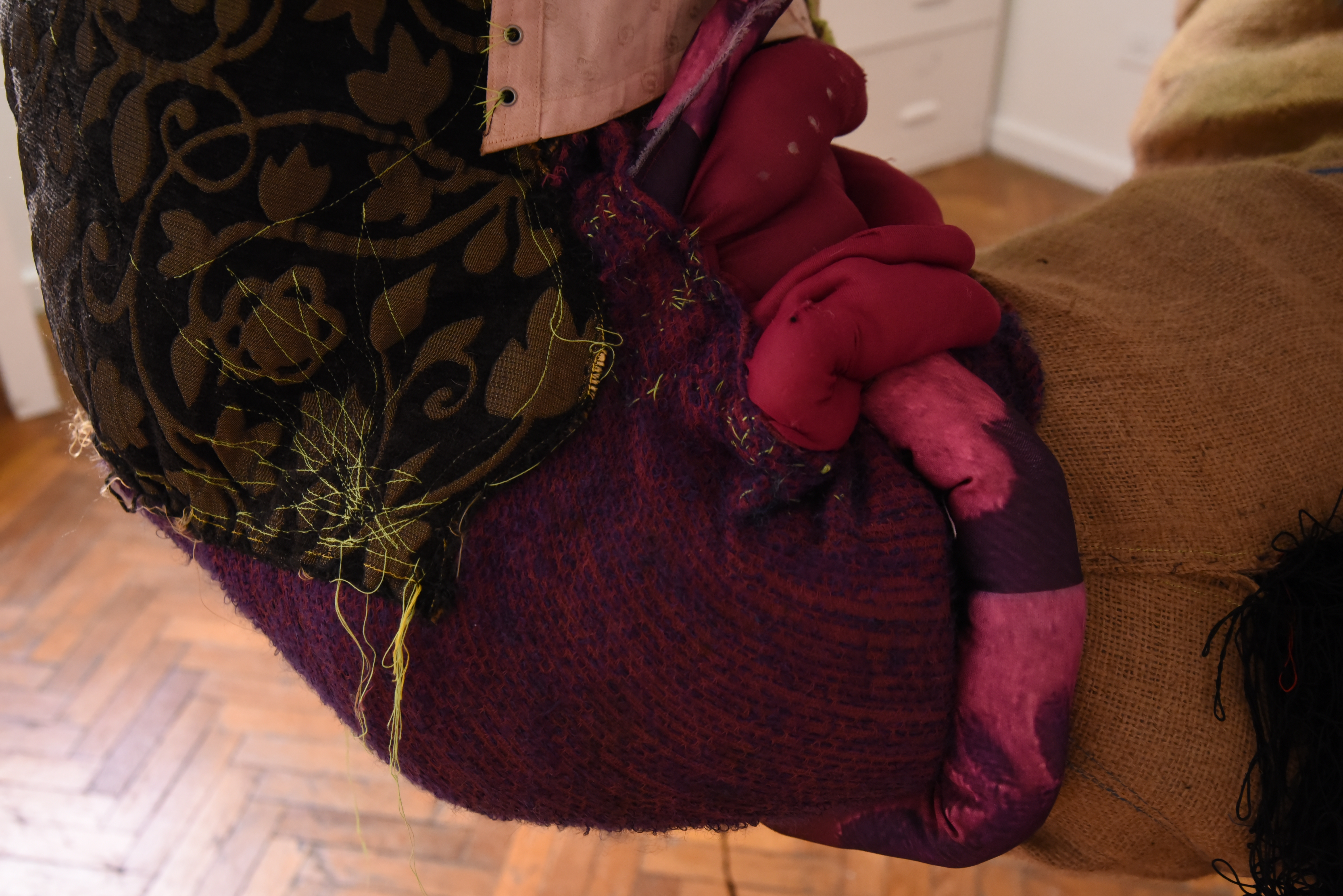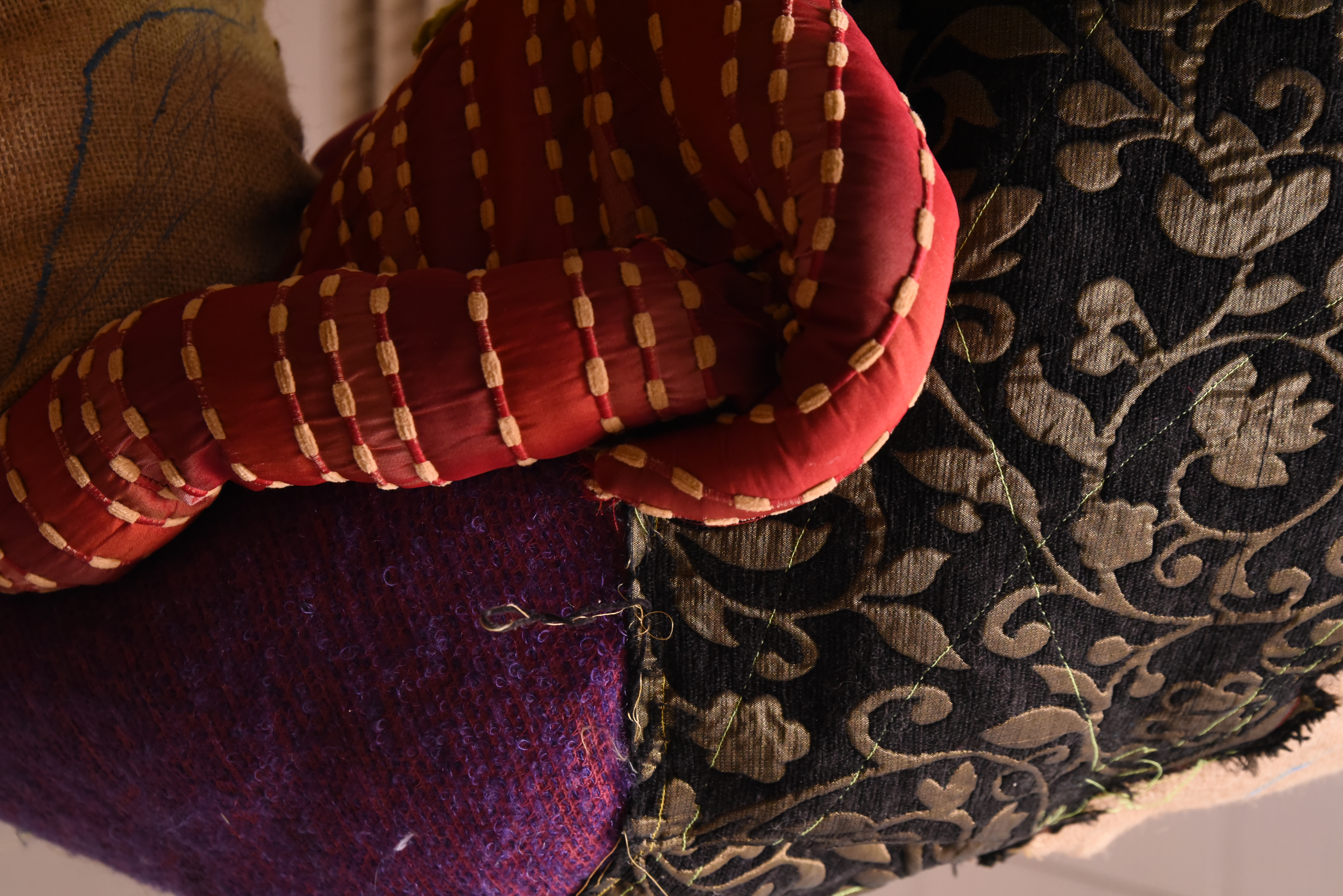 textiles heredados de varias generaciones de mi familia forman esta escultura blanda.